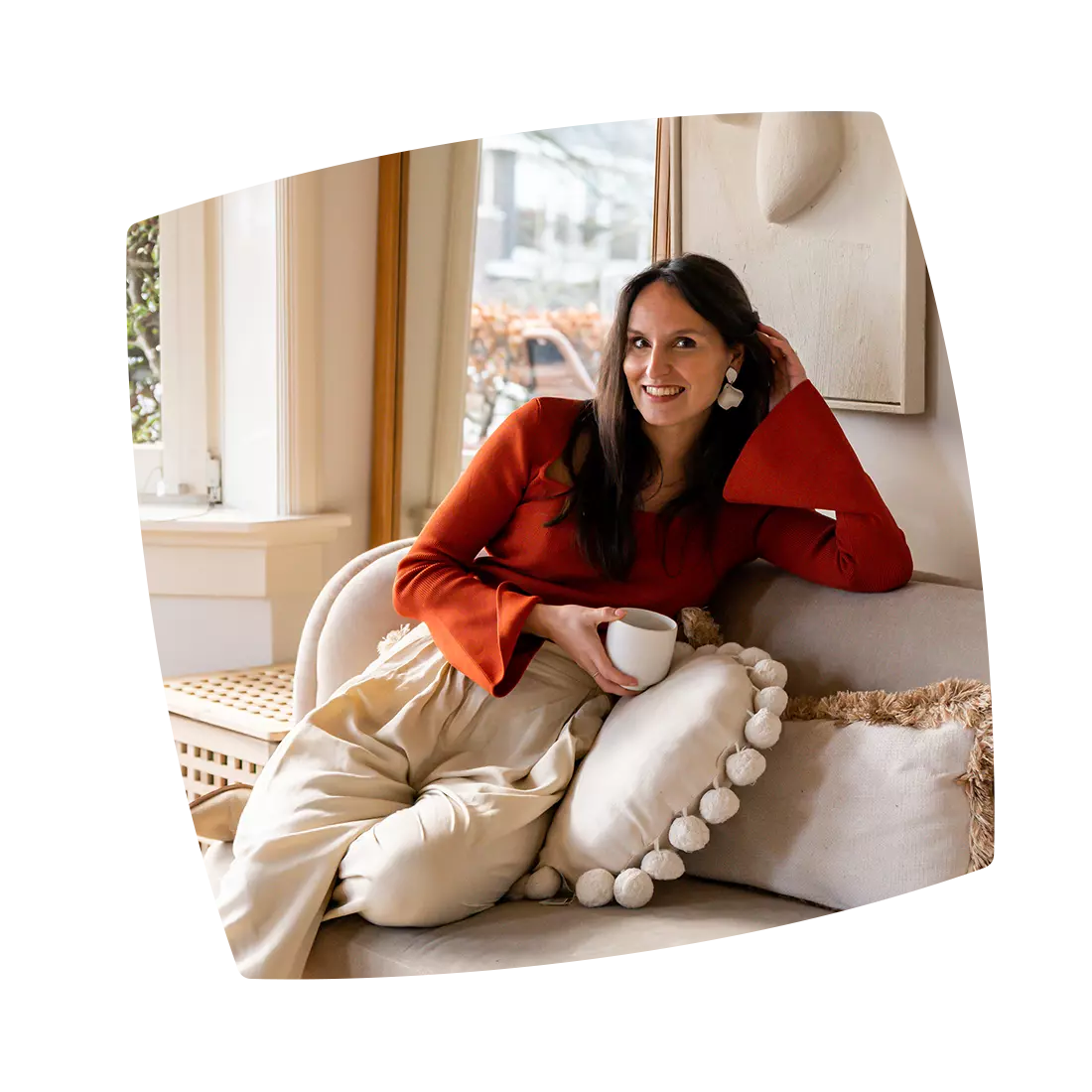 „Bei der Inneneinrichtung legten wir besonderen Wert auf helle, erdige Farben, die wir mit warmen Elementen wie Holz und Pflanzen akzentuierten. Denn für mich ist das Schlafzimmer ein Ort zum Auftanken. Die Highlights sind der weiche Teppich und die auffällige Tapete, in die ich mich auf den ersten Blick verliebt habe.“